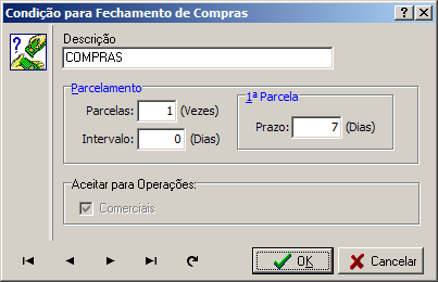 Obs: Esta condição é utilizada apenas na emissão de Pedido de Compra em operações comerciais.