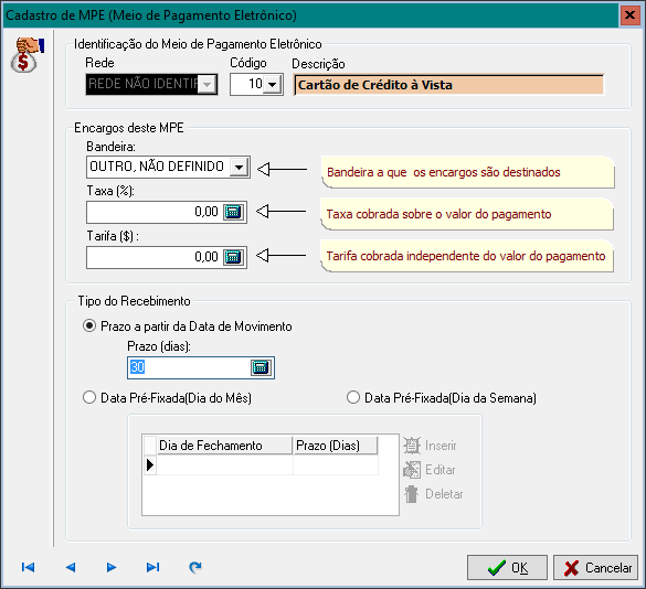 Esta interface você deverá associar uma Rede (VisaNet, RedeCard, Amex, etc) com um MPE: