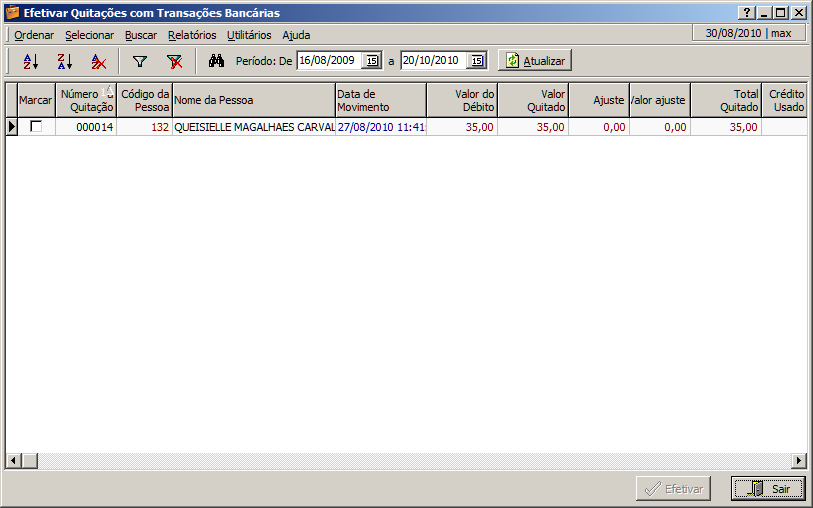 Para efetivar estas operações, deve-se marcar as operações desejadas e em seguida clicar no botão efetivar.