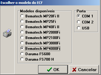 - Escolha o modelo do ECF a ser utilizado. Provavelmente o modelo do ECF estará escrito sobre o mesmo;