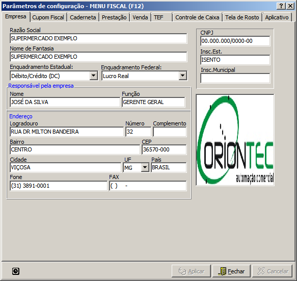 Nesta interface são definidos os parâmetros para configuração do módulo.