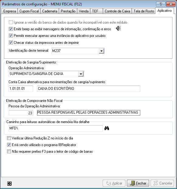 - Conta Caixa alternativa para movimentações de sangria/suprimento: