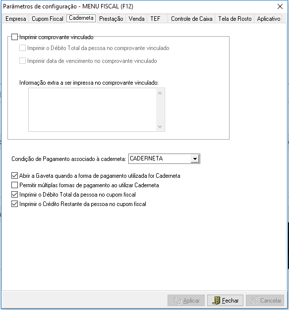 - Abrir a Gaveta quando a forma de pagamento utilizada for Caderneta: