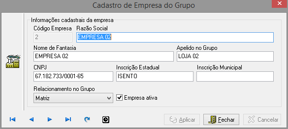 para facilitar a representação da empresa no grupo de empresas. Este Apelido será usado em interfaces onde o usuário