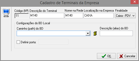 Quando o terminal possuir um banco de dados (como os terminais CAIXA - PDV -