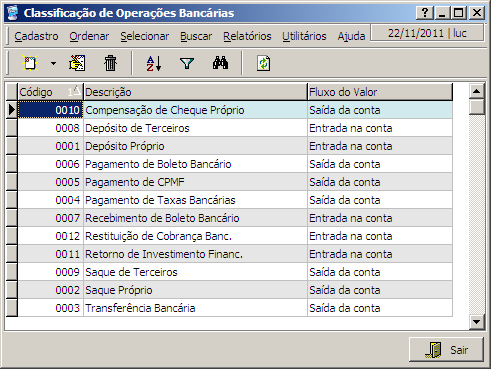 Nesta interface são exibidas as classes de operações bancárias realizadas pela empresa.