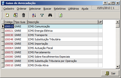 Interface que permite a visualização das guias de arrecadação provenientes das operações fiscais.