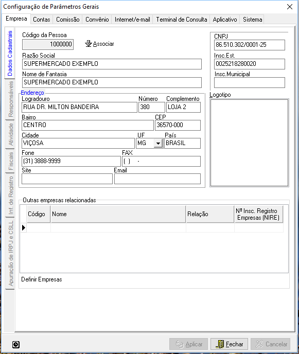 Outras empresas relacionadas: Permite relacionar a empresa proprietária a outras