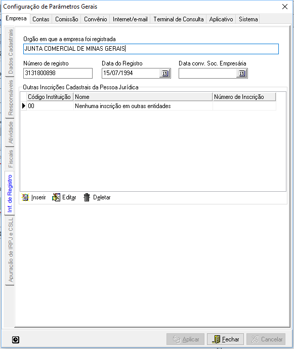 Neste parâmetro, definimos os responsáveis pela empresa, sendo essa