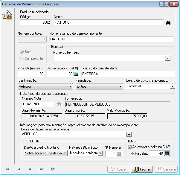 Cadastro de Bem do Ativo Imobilizado