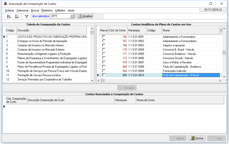 Informativo da Composição de Custos para geração do registro L210 da ECF.