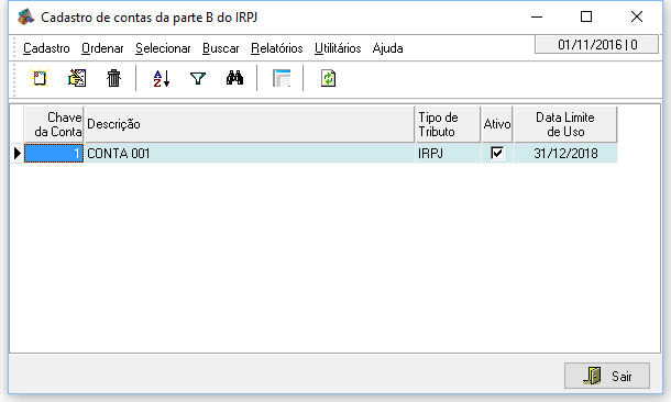 Identificação da conta na parte B do e-Lalur e do e-Lacs