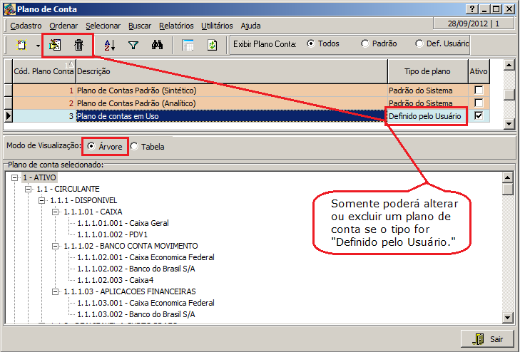 Esta interface exibe os planos de contas cadastrados no sistema.