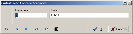 Nesta interface são definidos os campos: Hierarquia e Nome, necessários para inclusão de uma nova conta no Plano de Contas
