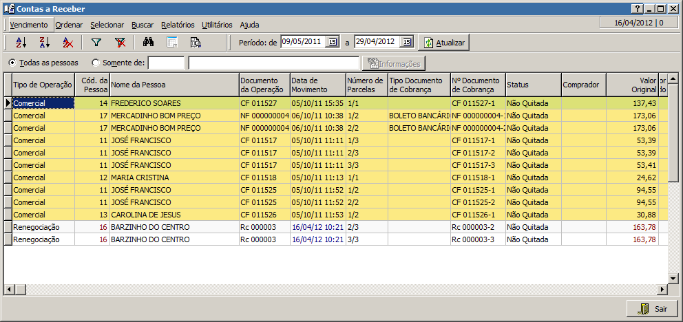 Menu "Selecionar--> Por Data de Movimento ou Vencimento"