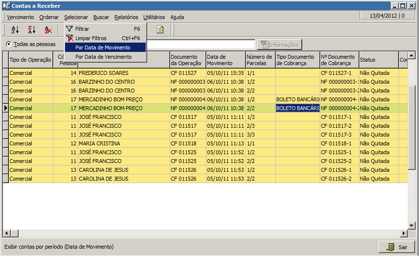 No menu "Selecionar" escolha a opção "Por Data Movimento" ou "Por Data de Vencimento".