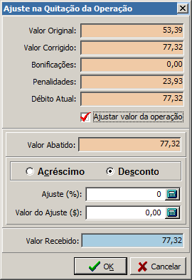 valor da operação e automaticamente o sistema calculará os valores do ajustes.
