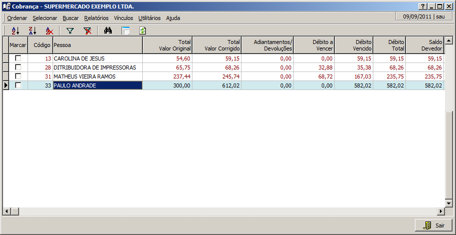 Interface para auxilio às cobranças de contas a receber de clientes.