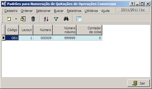 Interface de visualização e controle de numerações de quitações de operações comerciais.