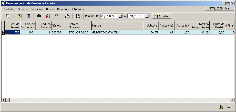 Interface de cadastro e visualização de informações de renegociações de contas a receber realizadas no sistema. A renegociação somente poderá ser feita para vencimentos de operações comerciais e funciona da seguinte maneira.