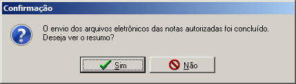 - Após enviados os e-mails é exibida a pergunta se deseja exibir o resumo
