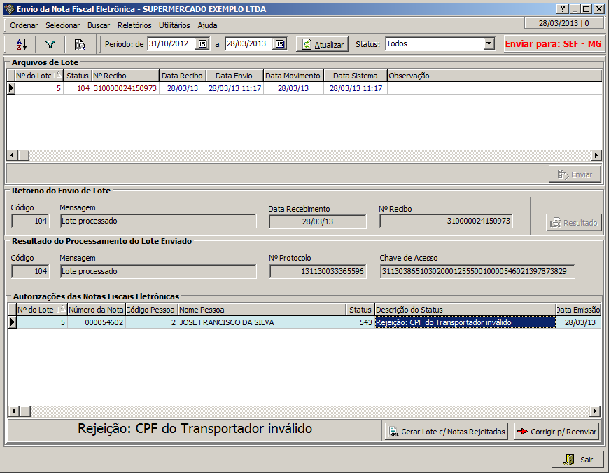 da Receita. Assim o Sistema permite a correção da nota rejeitada e seu reenvio
