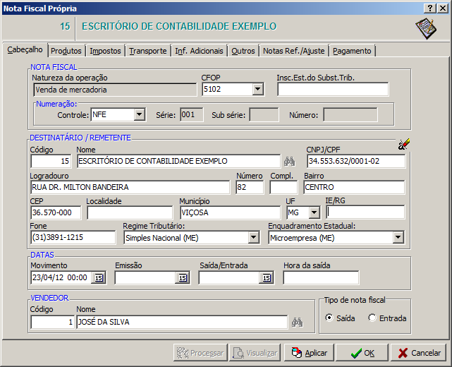 Notas Fiscais Próprias