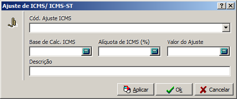 Nessa interface você pode cadastrar um ajuste de ICMS/ ICMS-ST. Esse ajuste