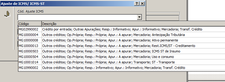 - Cód. Ajuste ICMS: Escolher o código de acordo com o