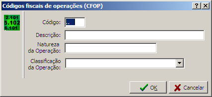 Nesta interface é feito o cadastro de um novo CFOP ou alteração de algum existente