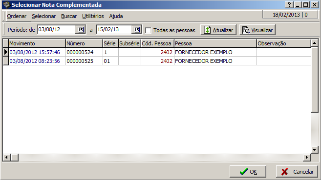 Por padrão a tela acima filtra as notas do mesmo fornecedor daquela que