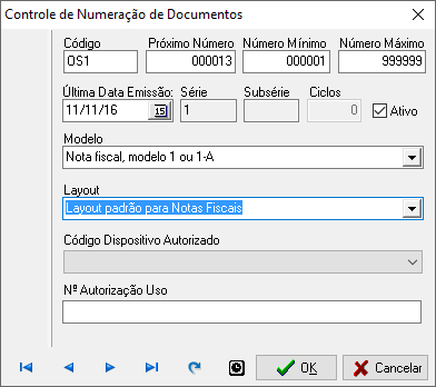 Interface para Inserir/Editar os cadastrados de controles de numeração de documentos usados pelo sistema.