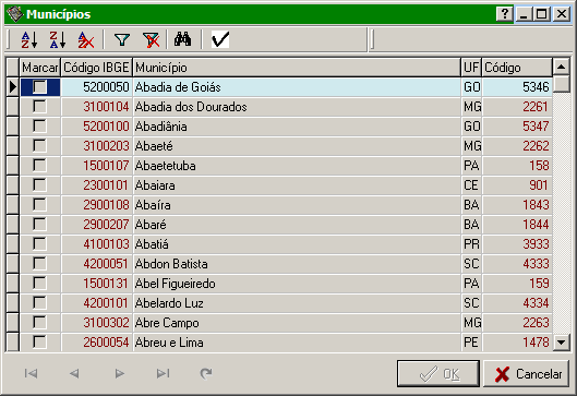 Essa interface permite a seleção de vários municípios de uma só vez.