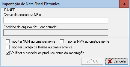 Verificar e associar os produtos antes da importação: Se a opção estiver marcada, a interface de associação de produtos do cadastro ao XML de NFe, será exibida após confirmação.