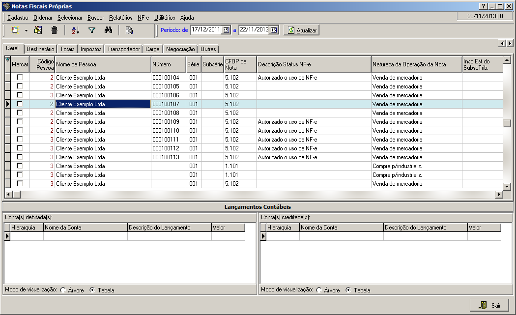 Outro recurso disponível nesta interface é a geração, validação e envio de notas fiscais eletrônicas (NFe).