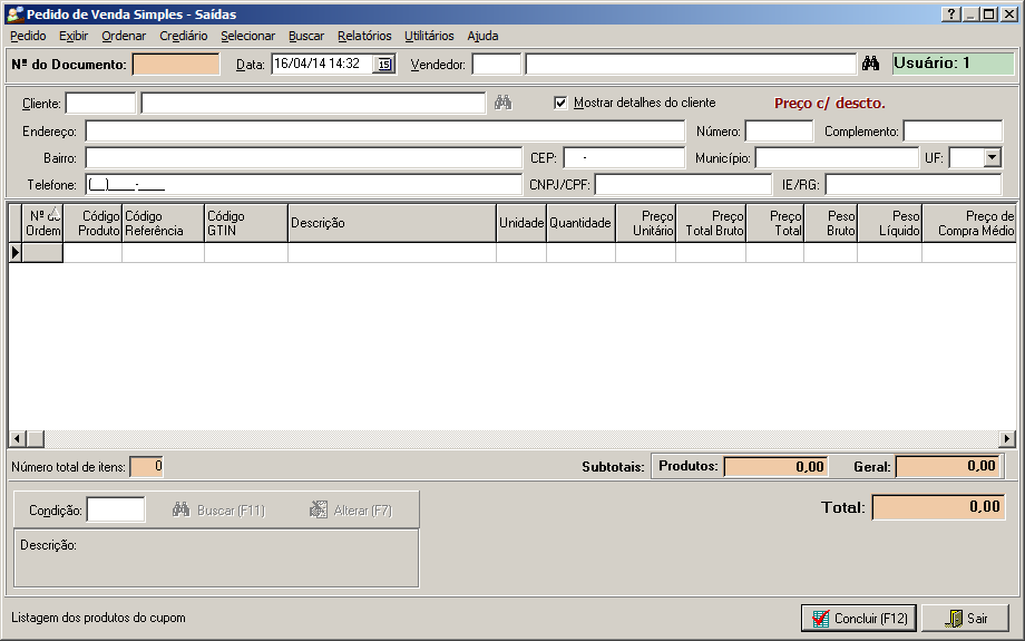 Preenchendo um Pedido de Venda Simples: