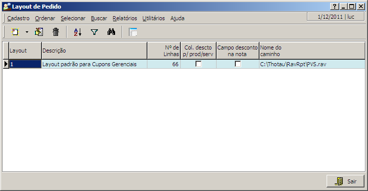 Tela de cadastro de layouts para cupons gerenciais utilizados pelo módulo.