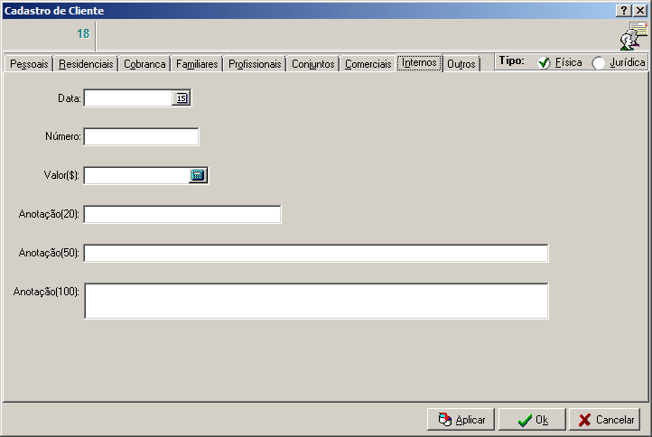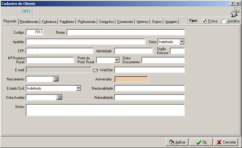 Notas: Campo destinado a qualquer informação sobre a pessoa. Este campo comporta 256 caracteres.