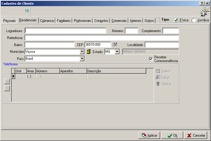 Receber Correspondência: Campo destinado á marcação se a pessoa vai receber correspondência neste endereço.
