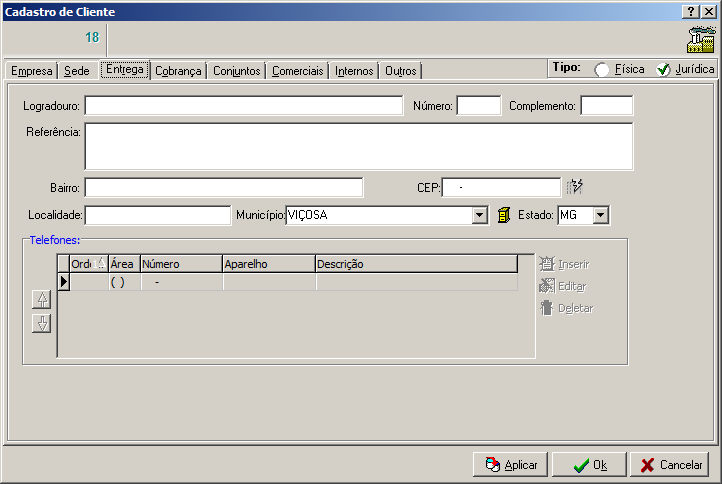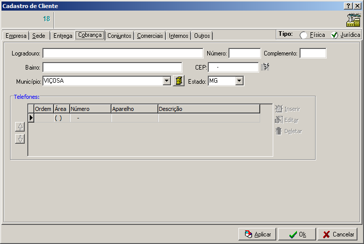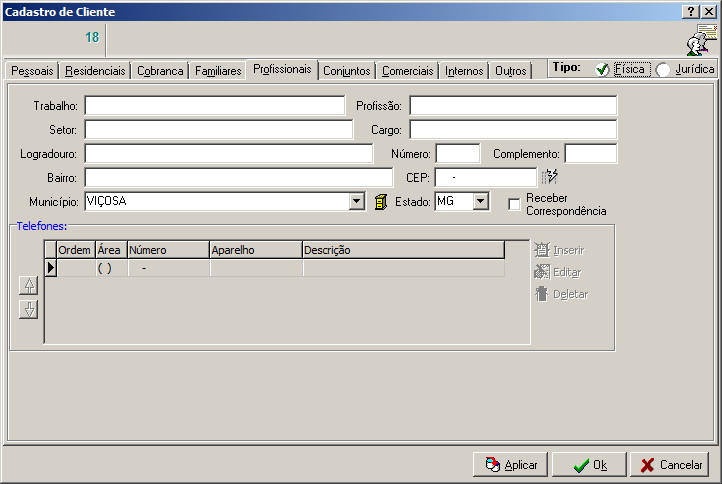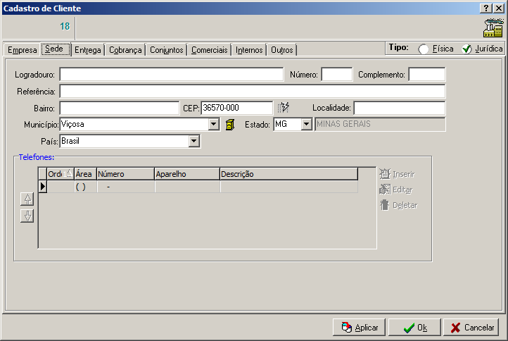 Inativo: Através deste campo, podemos tornar inativo o cadastro de uma pessoa. Se a pessoa estiver inativa, o seu cadastro não aparecerá no cadastro de clientes. Este campo é necessário, porque uma vez que o cadastro da pessoa já tenha sido usado em alguma transação no sistema, ele não poderá ser apagado. Caso exista algum cadastro que o usuário não queira que aparece mais na relação de pessoas cadastradas, basta marcar este cadastro como inativo.