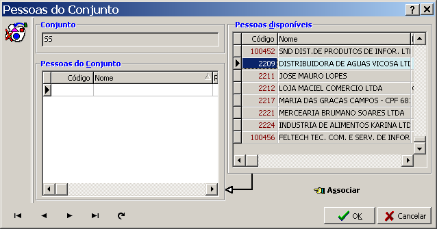Interface para associação de Clientes aos Conjuntos.Através desta interface o usuário poderá associar ou desassociar Clientes aos Conjuntos.