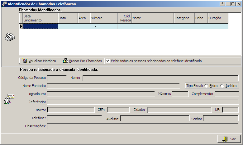 Exibe as chamadas identificadas pelo Bina (Identificador de Chamadas) conectado ao computador.
