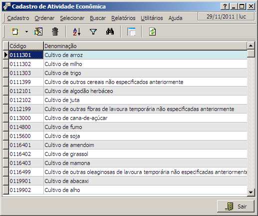 Nesta interface são cadastradas as Atividades Econômicas que podem ser desenvolvidas pelas empresas de acordo com a legislação vigente.