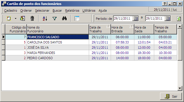 Nesta interface o usuário terá todas as informações a respeito dos horários de entrada e saída de cada funcionário.