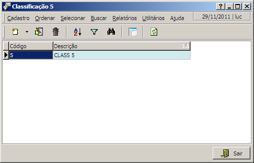 Nesta interface, temos acesso ao Cadastro das Classificações 5