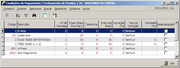 Nesta interface teremos as condições de pagamentos / fechamentos de vendas.