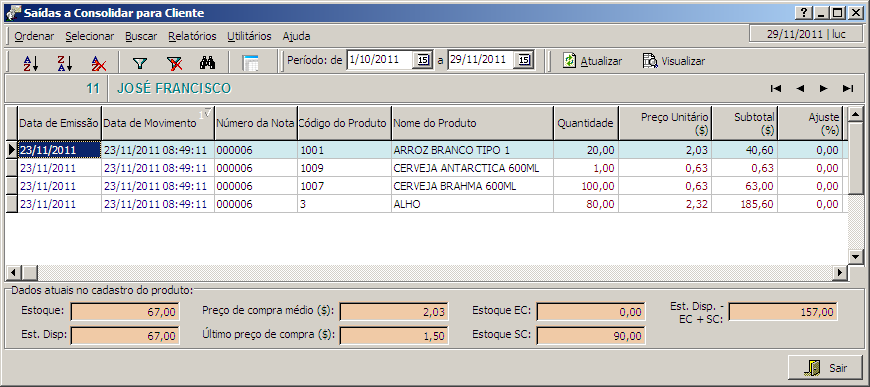 Nesta interface teremos acesso às saídas a consolidar da pessoa.