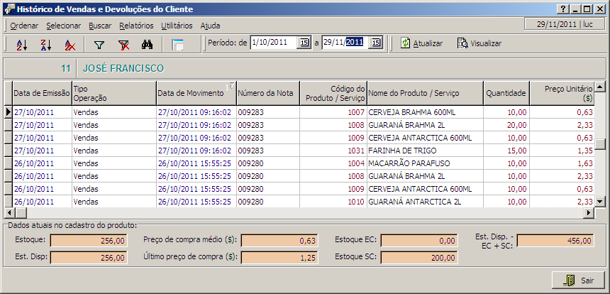 Nesta interface teremos acesso aos históricos de vendas para a pessoa.
