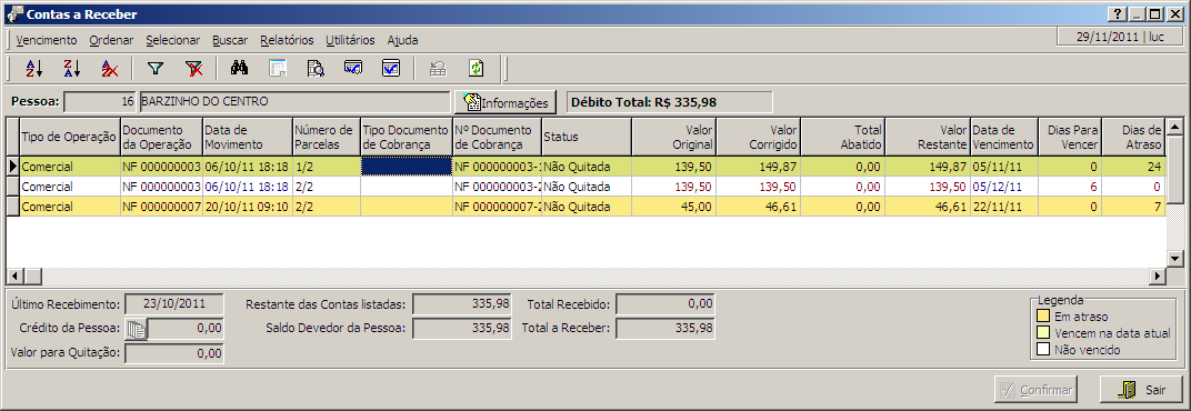 Nesta interface, temos acesso às contas a Receber / Pagar das pessoas, onde o usuário poderá tirar relatórios, efetuar quitações, etc..