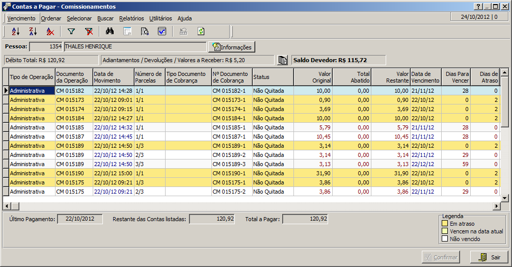 - Relatórios >> Comissão a pagar: É gerado um relatório onde o usuário